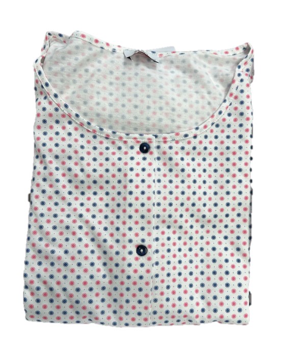 Questa camicia da notte mezze maniche in puro cotone è il capo perfetto per garantire comfort e freschezza durante le calde notti estive. Realizzata in Italia con una lavorazione artigianale di alta qualità, questa camicia da notte offre un mix di materiali resistenti e traspiranti. Il cotone al 100% garantisce una sensazione piacevole sulla pelle e una libertà di movimento senza precedenti, adatto per una notte di sonno tranquillo. Realizzato con attenzione ai dettagli, questo capo è il perfetto equilibrio tra stile e comfort.